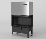 Inserție de șemineu de colț echipată cu ceramică de acumulare și un sistem fiabil de ridicare a ușii. Această inserție compactă are o ușă panoramică cu geam lateral pentru o vedere completă a focului. Mânerul din oțel inoxidabil pentru deschiderea ușii îi subliniază unicitatea și adaugă eleganță.